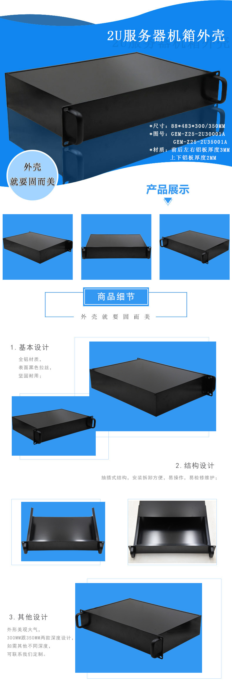 2u工控機箱|工控服務器機箱|2u300/350深機箱|固而美鋁合金鈑金機箱定制加工|
