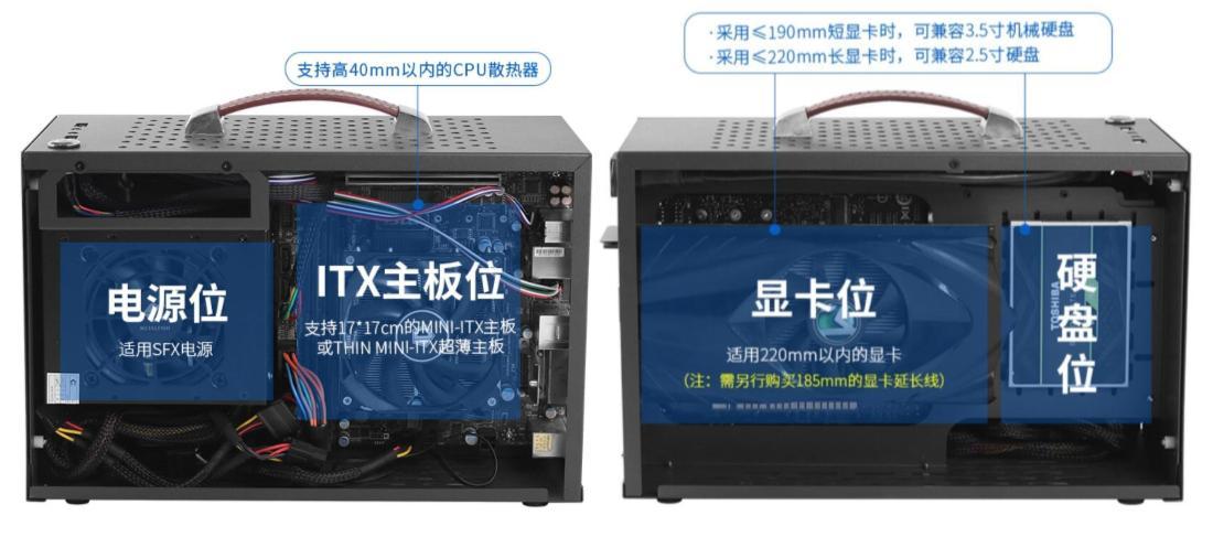 1、itx手提式小機(jī)箱的體型帶來了相應(yīng)的空間組裝電源線、主板芯片顯卡、硬盤等硬件配置,同時(shí)通過機(jī)箱內(nèi)的托架將各種硬件配置固定機(jī)箱內(nèi),構(gòu)成一個(gè)相對獨(dú)立的體系結(jié)構(gòu)。